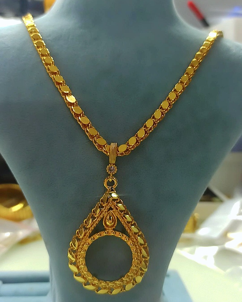 22K Altın Kaplama 60 Cm Arpa Zincirli Tam Altın Çerçeveli Kolye
