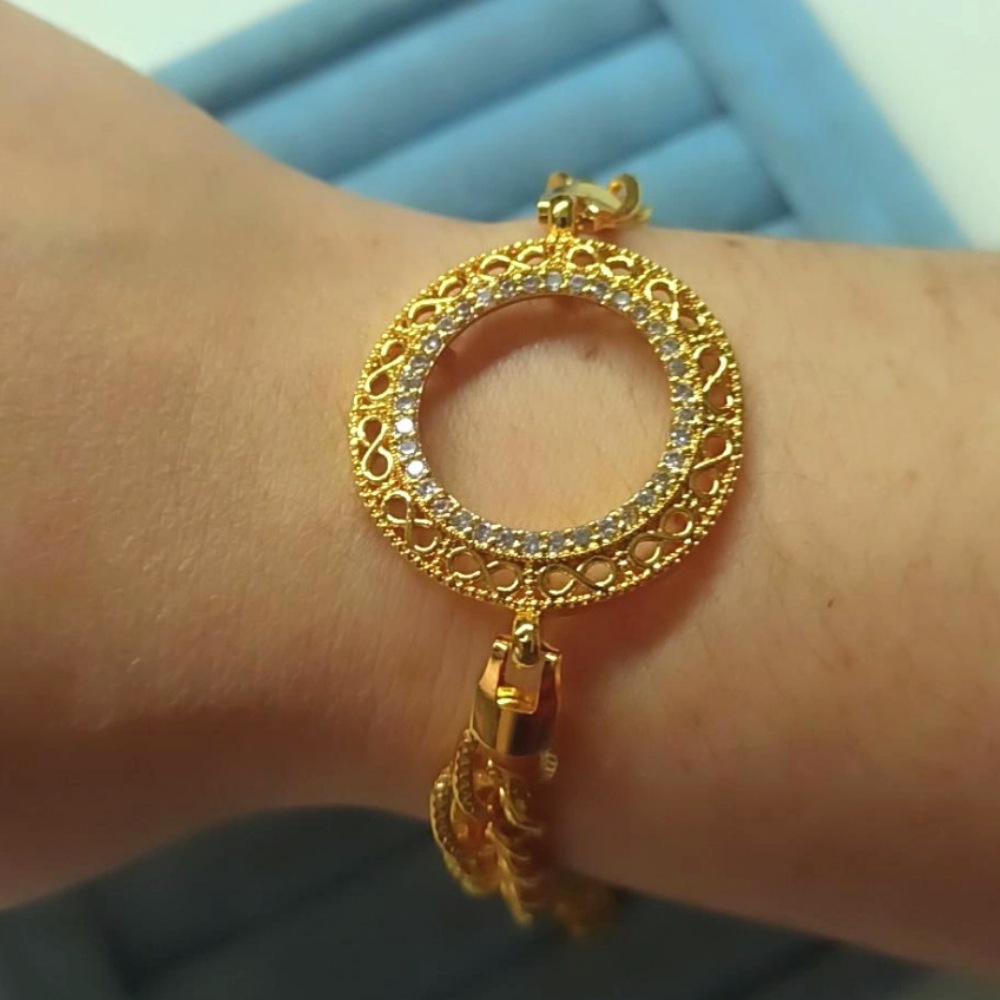 Hayatınızdaki özel anları ölümsüzleştirecek zarafette bir aksesuar arıyorsanız, 22K İmitasyon Altın Kaplama yarım Altın Çerçeveli Sonsuzluk Bileklik tam size göre! Bu sıra dışı bileklik, modern ve şık tasarımıyla her kadının aksesuar koleksiyonuna eşsiz bir dokunuş katacak.